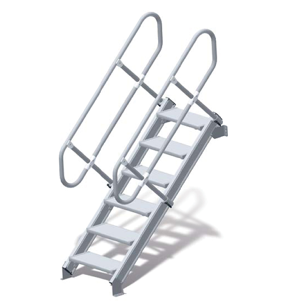 Подбирайте подходящий вариант дополнительного поручня в соответствии с выбранной ранее моделью трапа из алюминия. Установленный второй поручень обеспечит максимальное удобство при спуске и подъеме по трапу, а также позволит оператору более устойчиво и, соответственно, безопасно расположиться на лестнице для проведения необходимых работ на высоте.